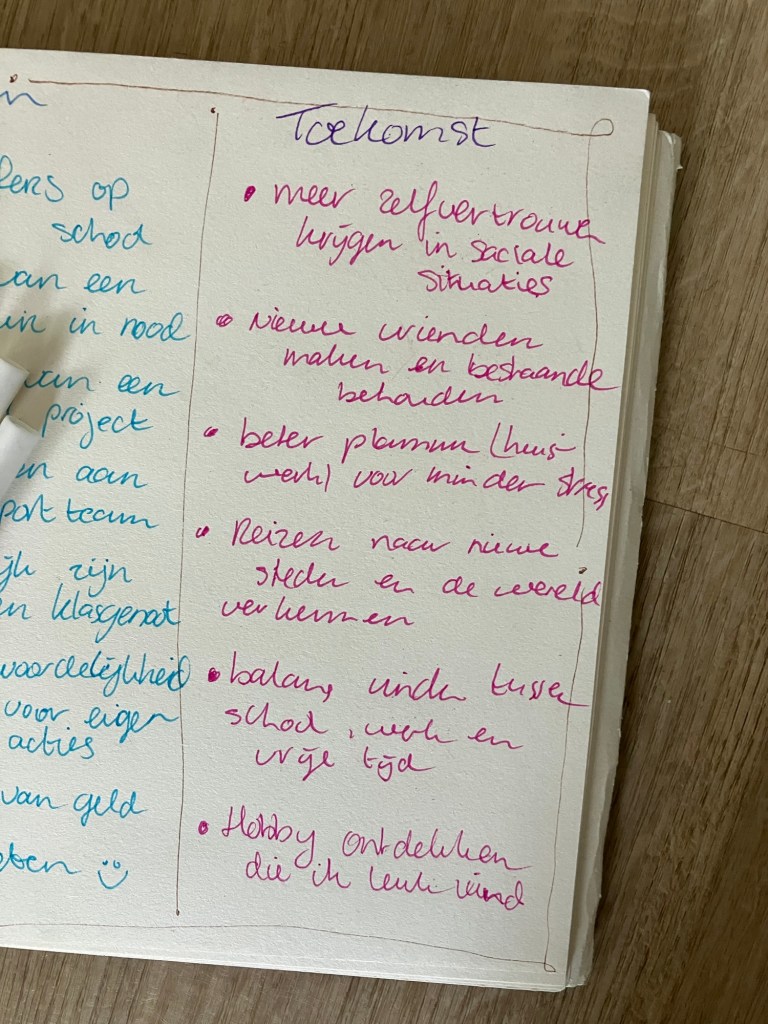 Neem een moment om te reflecteren op wat je hebt geschreven. Zie je een verband tussen de complimenten uit het verleden en de dingen waar je nu trots op bent? Hoe kunnen deze inzichten je helpen om je toekomstige doelen te bereiken? Deze oefening kan je helpen om een positiever zelfbeeld te ontwikkelen en je zelfvertrouwen te vergroten.