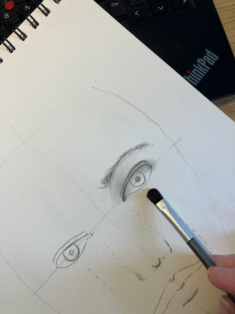 3. Ogen: Plaats de ogen op de horizontale lijn, ongeveer één oogbreedte uit elkaar.