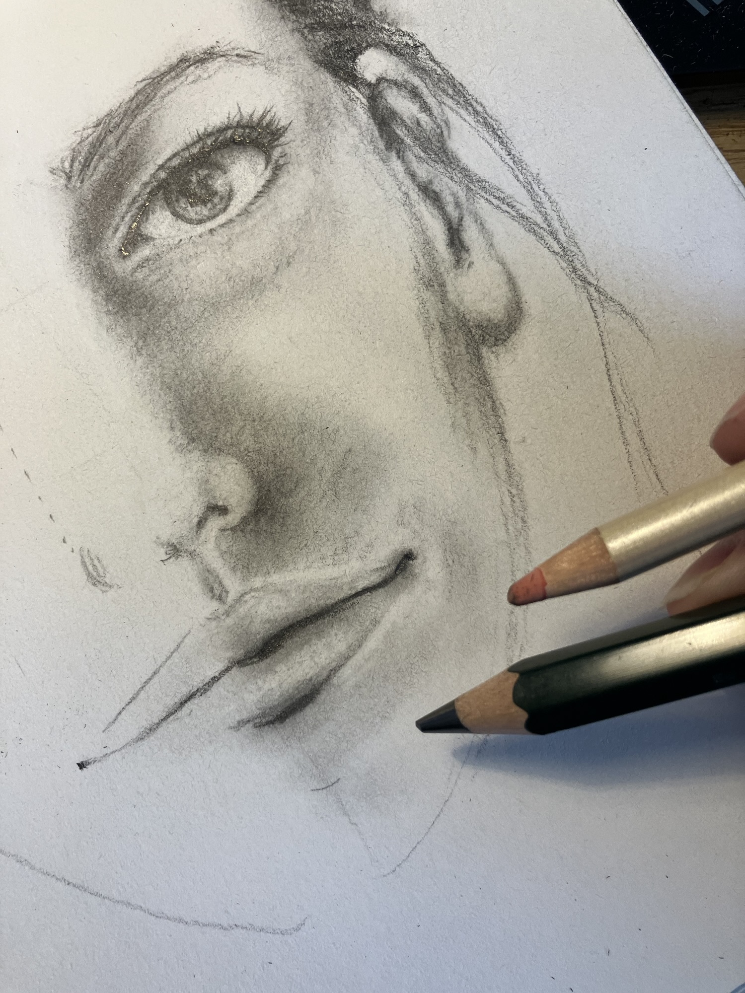 Gebruik een gum om lichte highlights te creëren en donkere potloden voor de diepste schaduwen.
