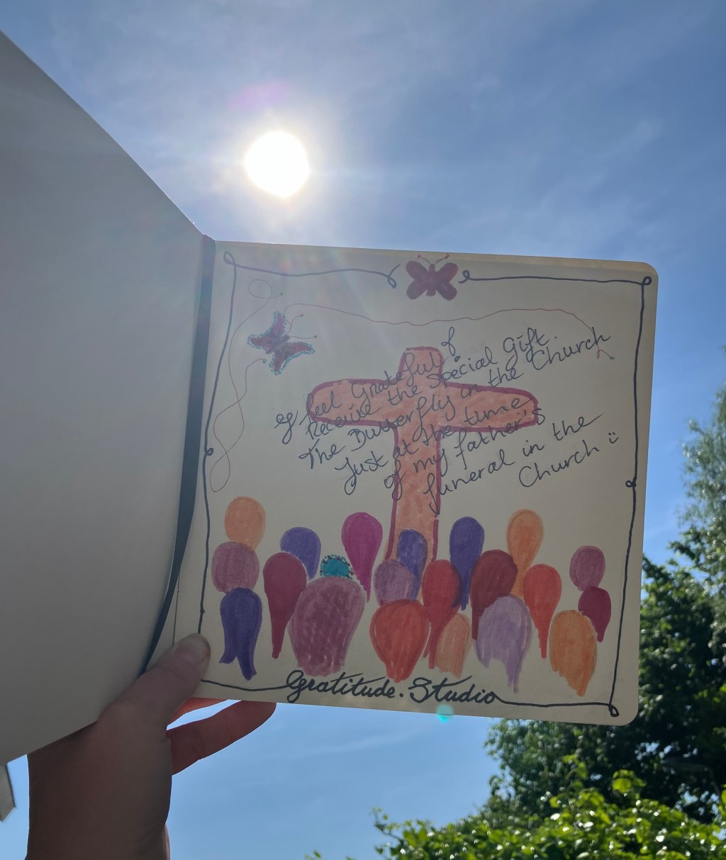 Ik voel me dankbaar. Want is het niet een speciaal geschenk… Dat er zo ineens een vlinder verschijnt, rond fladderend in de kerk, tijdens de uitvaart van mijn vader die zo van vlinders hield. Hij was te vroeg gegaan en tijd voor ons was er maar kort, om onze hereniging te vieren. Dan voelt het als een speciaal cadeau…